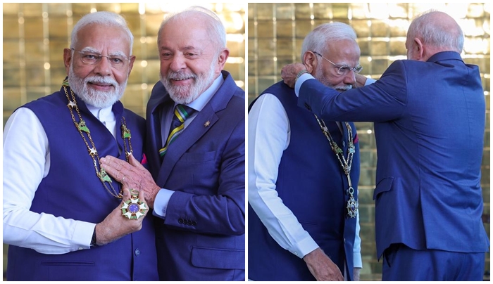 President #Lula_bestowed #Brazil‘s #highest_civilian_honour, the ‘Grand Collar of the National Order of the Southern Cross,’ upon #PM @narendramodi ji. pic.twitter.com/ahPVXmoRXD