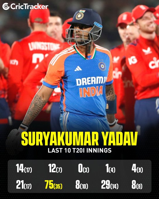 ఇదిలా ఉండగా మ్యాచులోనూ కెప్టెన్ సూర్యకుమార్ యాదవ్(SKY) పేలవ షాట్ ఆడి నిరాశపర్చాడు. సూర్య గత 10 T20ల్లో కేవలం 172 పరుగులే చేసి దారుణంగా విఫలమయ్యాడు. ఒకే ఒక్క హాఫ్ సెంచరీ మాత్రమే నమోదు చేశాడు. దీంతో SKYపైనా విమర్శలు వస్తున్నాయి. కెప్టెన్సీ(Captancy) రాగానే ఆటపోయిందంటూ మాజీలు, అభిమానులు విమర్శిస్తున్నారు. తర్వాతి మ్యాచుల్లోనైనా సూర్య రాణించాలని, లేకపోతే భారత్కు కష్టమవుతుందంటున్నారు. కాగా ఇరుజట్ల మధ్య నాలుగో మ్యాచ్ ఈనెల 31న పుణే(Pune) వేదికగా జరగనుంది.