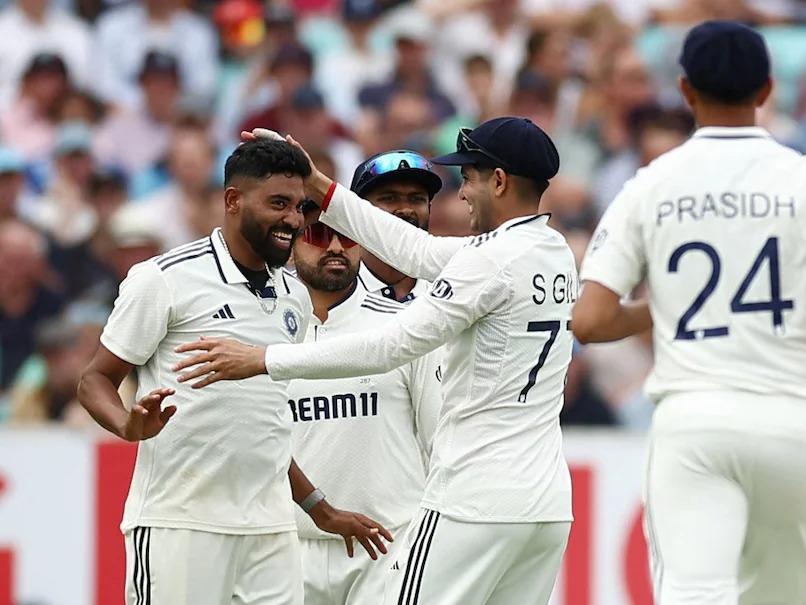 చివరిదైన ఐదో రోజు ఇంగ్లండ్ విజయానికి 35 పరుగులు అవసరం కాగా.. ఆట ప్రారంభమయ్యాక తొలి ఓవర్లోనే జేమీ ఒవర్టన్ (9) రెండు ఫోర్లు కొట్లాడు. దీంతో లక్ష్యం మరింత తగ్గింది. దీంతో భారత ప్రేక్షకుల్లో ఆందోళన మొదలైంది. అయితే, సిరాజ్ వరుస ఓవర్లలో జేమీ స్మిత్ (2), ఒవర్టన్ను ఔట్ చేసి ఇంగ్లండ్ను దెబ్బతీశాడు. కాసేపటికే జోష్ టంగ్ (0)ని ప్రసిద్ధ్ క్లీన్బౌల్డ్ చేశాడు. అప్పటికి ఇంగ్లాండ్ స్కోరు 357/9.