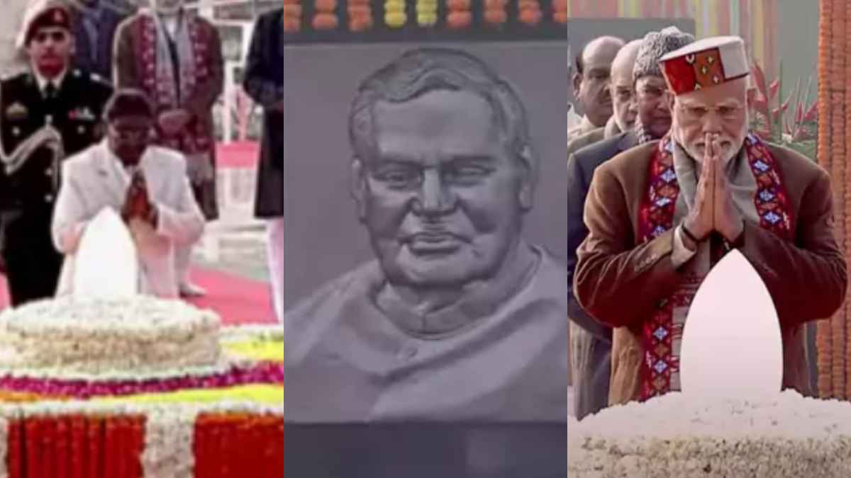 VIDEO | President Droupadi Murmu, Vice President Jagdeep Dhankhar, Prime Minister Narendra Modi, Former President Ram Nath Kovind, Home Minister Amit Shah, Lok Sabha Speaker Om Birla, and other leaders pay tribute to former PM Atal Bihari Vajpayee during his centenary birth… pic.twitter.com/oBDQnHs2mP