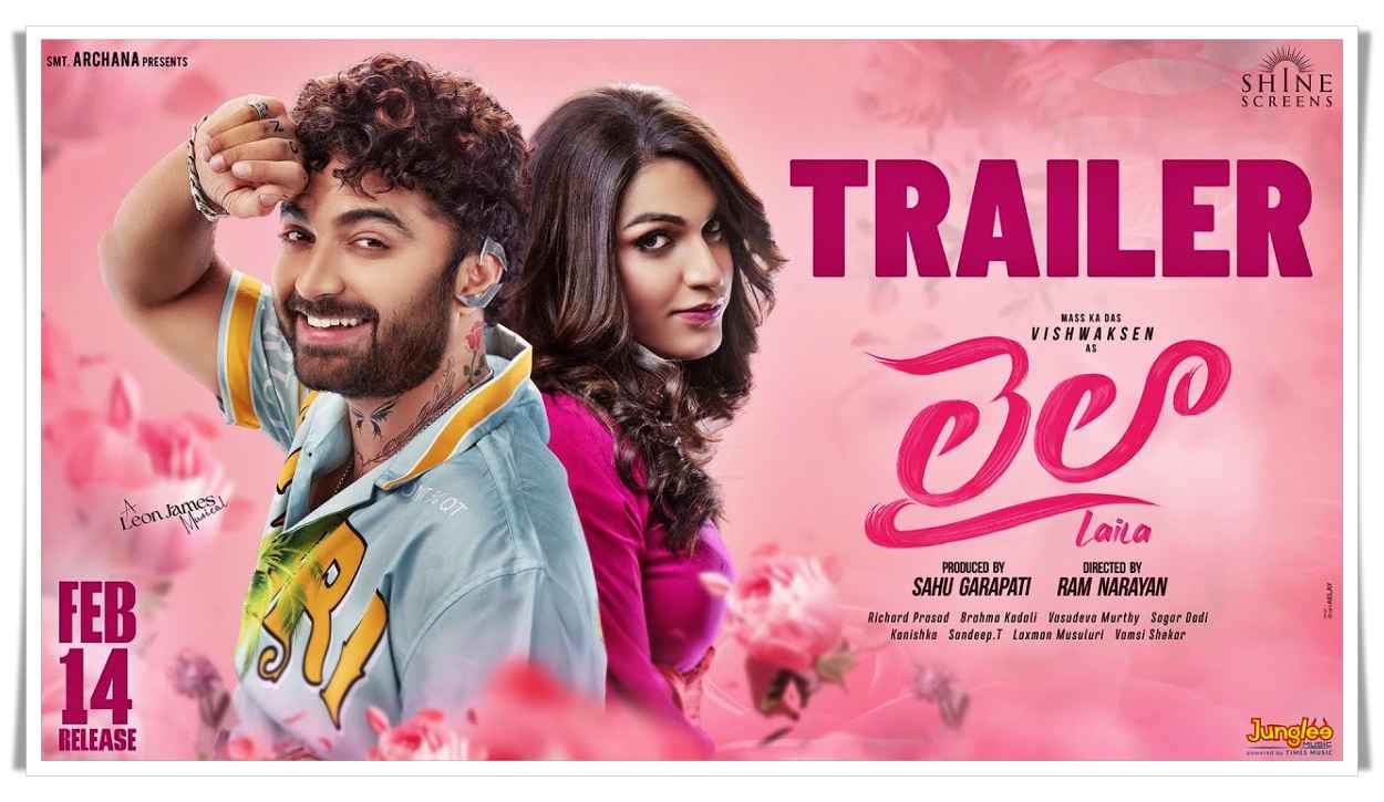విశ్వక్ సేన్ (Vishwak Sen) హీరోగా వస్తున్న లేటెస్ట్ సినిమా ‘లైలా (Laila)’. రామనారాయణ్ అనే కొత్త దర్శకుడు తెరకెక్కించిన ఈ సినిమాను సాహు గారపాటి షైన్ స్క్రీన్స్ నిర్మిస్తోంది. ప్రేమికుల రోజు పురస్కరించుకుని ఫిబ్రవరి 14వ తేదీన ఈ సినిమా థియేటర్లలో విడుదల కానుంది. రిలీజ్ డేట్ దగ్గరపడుతున్న నేపథ్యంలో తాజాగా చిత్రబృందం ట్రైలర్ ను రిలీజ్ చేసింది. ఈ సినిమాలో విశ్వక్ సేన్ లేడీ గెటప్లో కనిపించనుండడంతో సినిమా మీద అంచనాలు భారీగా ఉన్నాయి.